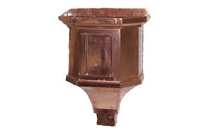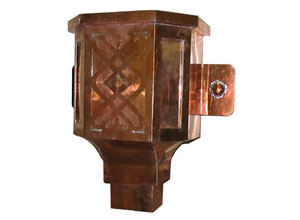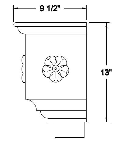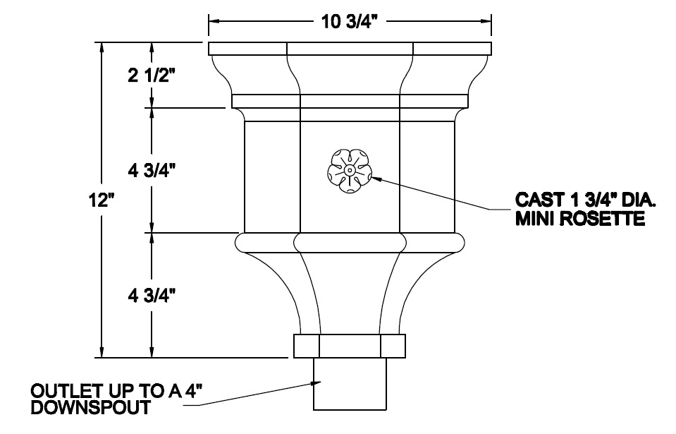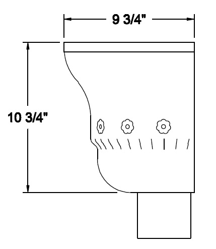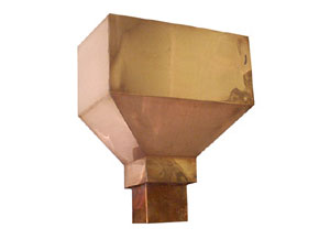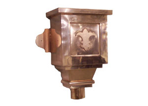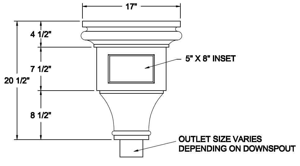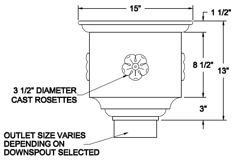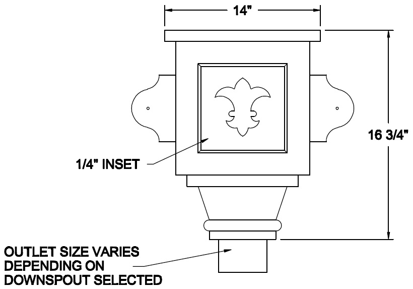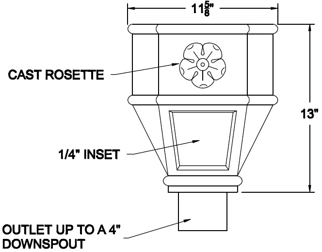 Built in overflow. Downspout strap not part of conductor head.