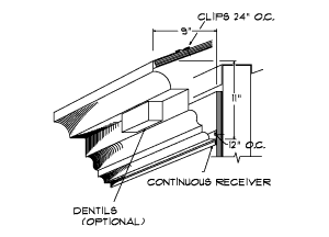 Available with or without dentils (5\" long paced at 12\" O.C.). Specify roof pitch. ×